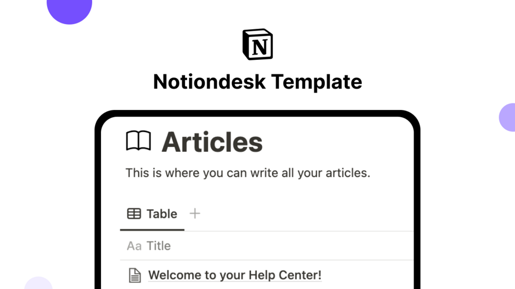 Notiondesk Template is designed to help you create a polished and professional-looking help center that is easy to navigate and search. With this template, you can build a help center that your team and customers will love using.